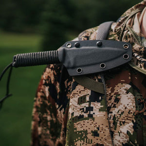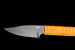 When you brave the wild, especially on foot, “every ounce counts.” That’s why this Paracord Knife tags along unnoticed in weight but essential in use. Our first paracord design ever released is strong and durable, yet light as a feather. Made with M390 steel, it features both a drop point and false edge spine for reduced weight and comfortable handle thickness when wrapped. This super-lightweight paracord features a woven texture for maximum knife control in the harsh conditions while the hollowed handle reduces weight even more without sacrificing strength. It’s ready for any adventure today, and for generations to come. This knife comes with a Kydex sleeve.